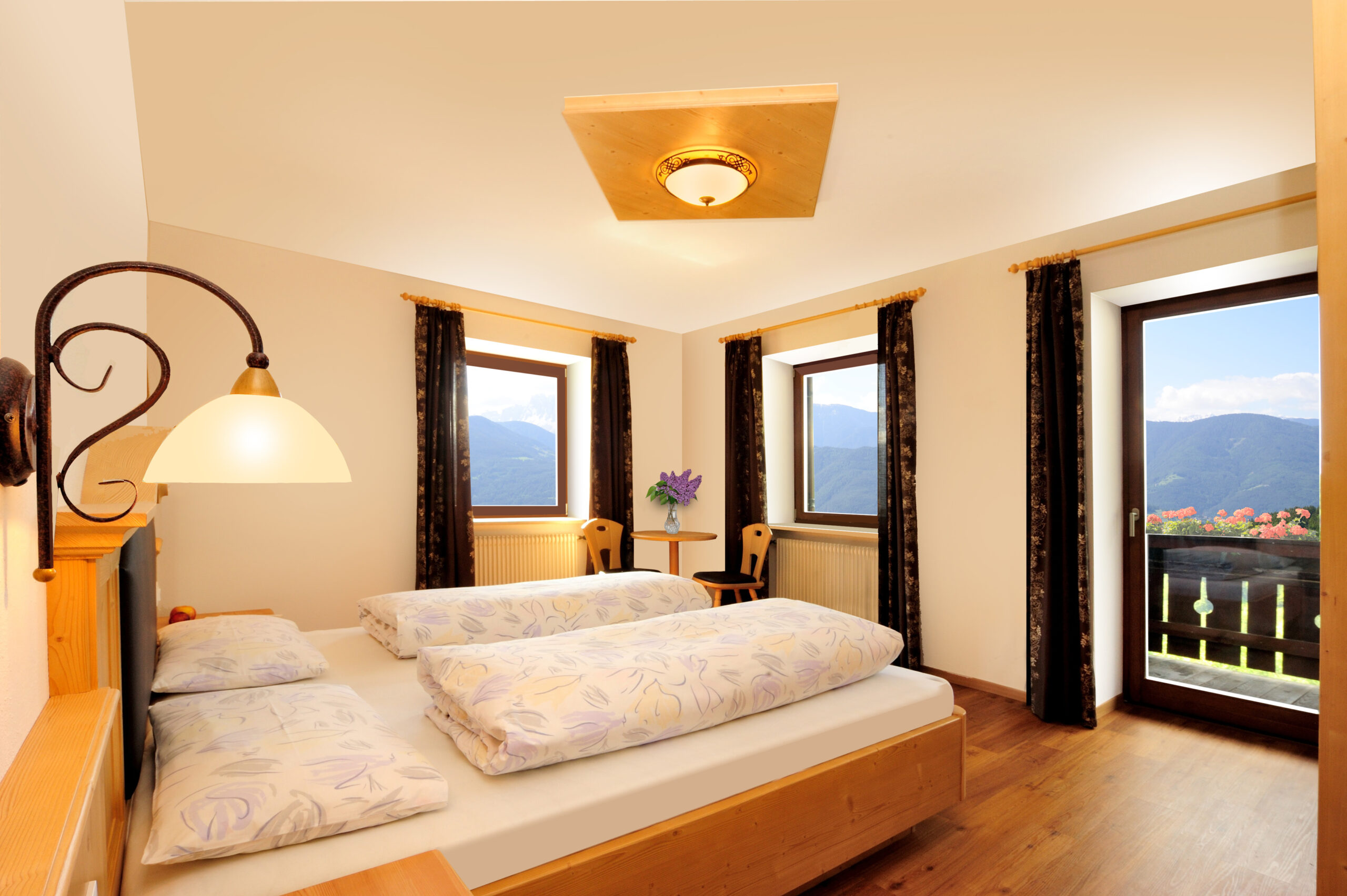 Unsere großzügigen Doppelbettzimmer mit Balkon sind die perfekte Unterkunft für naturverbundene Singles und Paare.